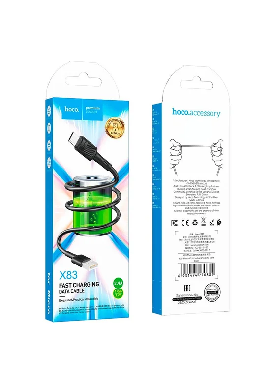Дата кабель Hoco X83 Victory USB to MicroUSB (1m) Black