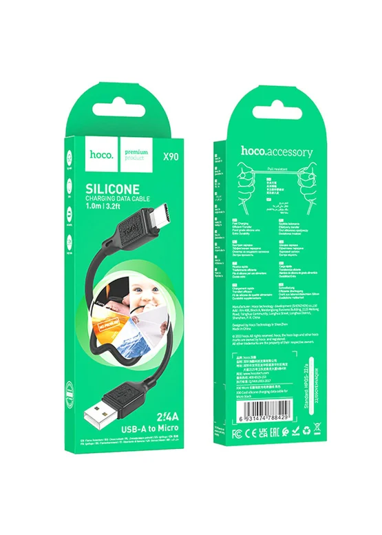 Дата кабель Hoco X90 Cool silicone USB to MicroUSB (1m) Black