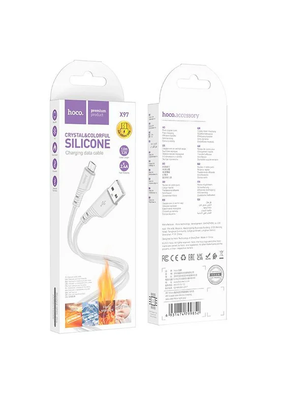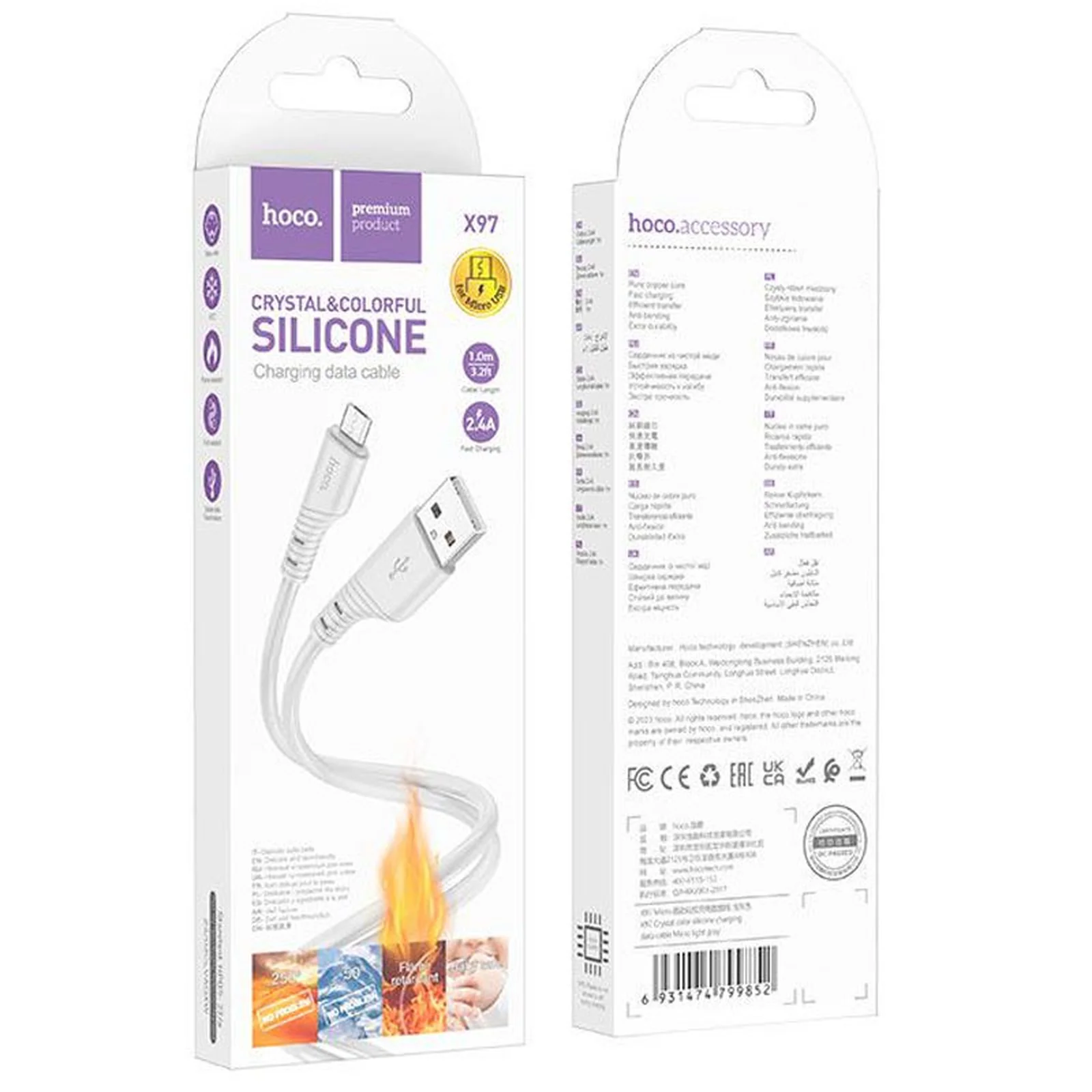 Дата кабель Hoco X97 Crystal color USB to MicroUSB (1m) Light gray