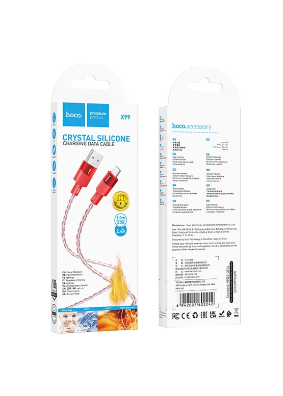 Дата кабель Hoco X99 Crystal Junction USB to MicroUSB (1.2m) Red