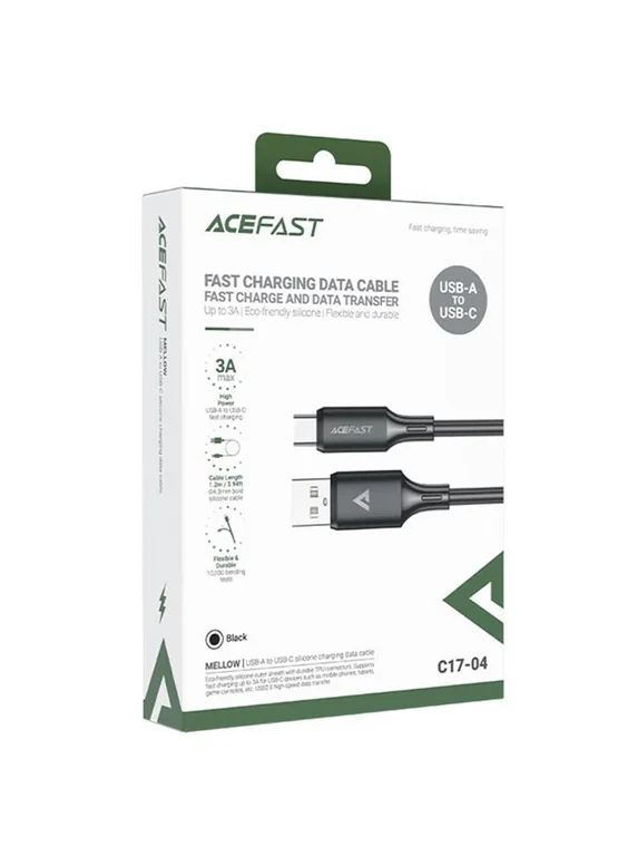 Дата кабель Acefast C17-04 USB to Type-C 3A (1.2m) Black
