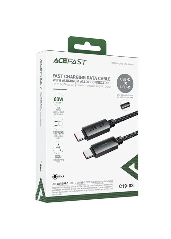 Дата кабель Acefast C19-03 Type-C to Type-C 60W (1.2m) Black