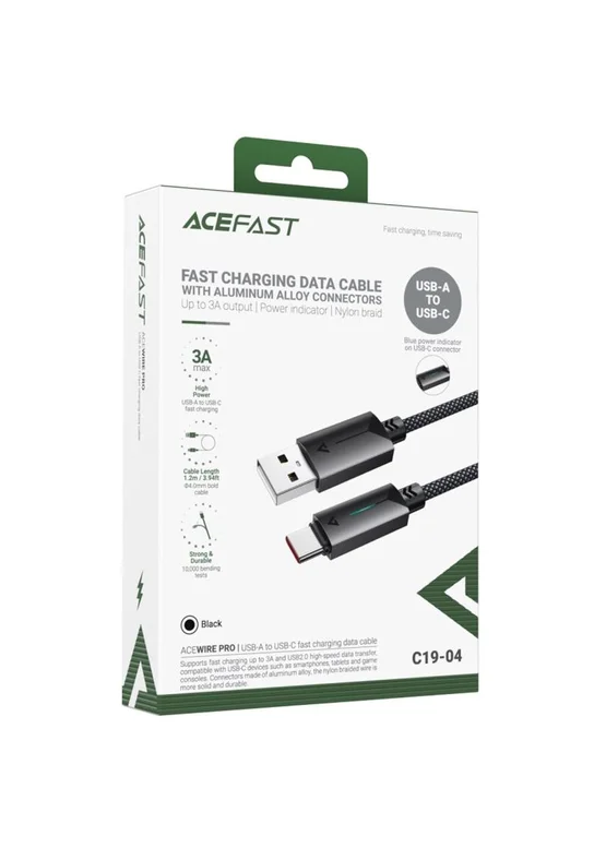Дата кабель Acefast C19-04 USB to Type-C 3A (1.2m) Black