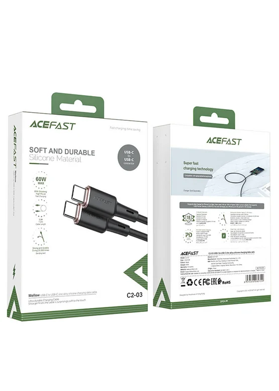 Дата кабель Acefast C2-03 USB-C to USB-C zinc alloy silicone (1m) Black