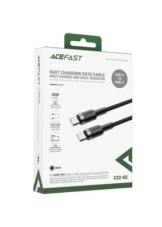 Дата кабель Acefast C22-03 Type-C to Type-C 60W (1.2m) Black