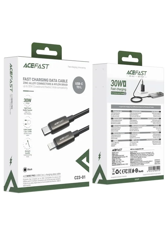 Дата кабель Acefast C23-01 Type-C to Lightning 30W (1.2m) Black