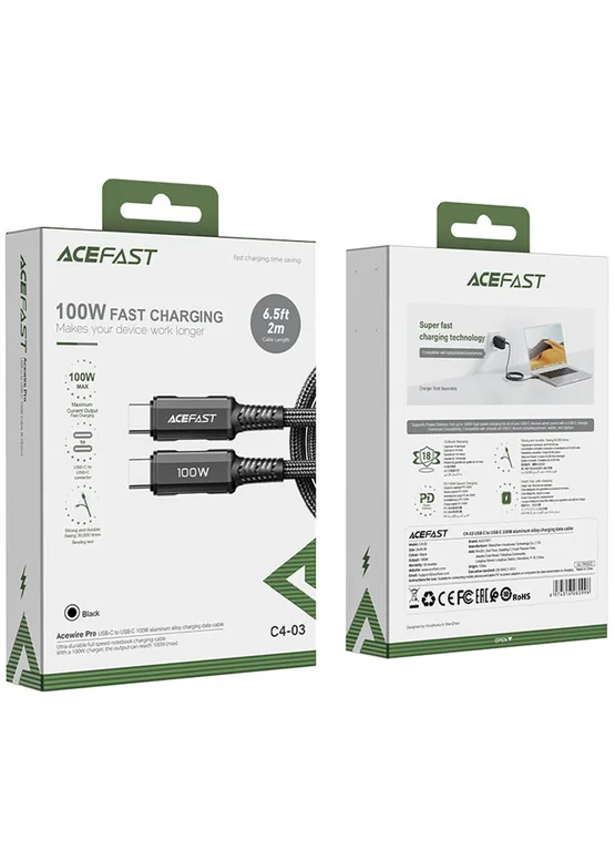 Дата кабель Acefast C4-03 USB-C to USB-C 100W aluminum alloy (1m) Black