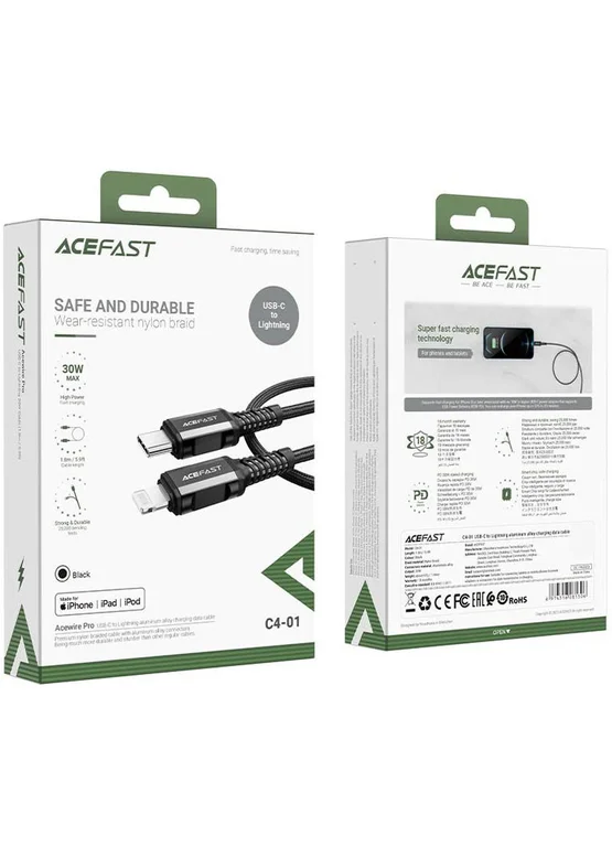Дата кабель Acefast MFI C4-01 USB-C to Lightning aluminum alloy (1.8m) Black