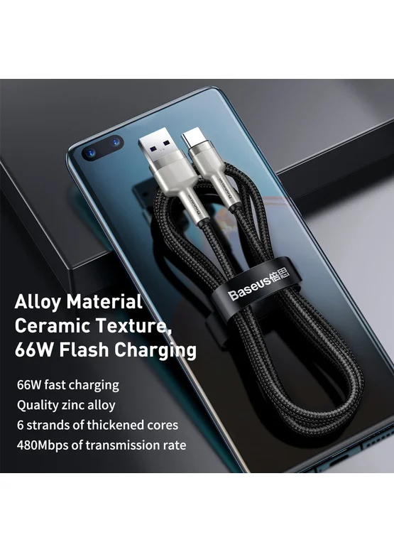 Дата кабель Baseus Cafule Metal Data USB to Type-C 66W (1m) (CAKF00010) Black
