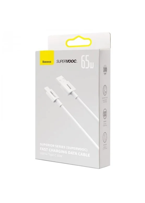 Дата кабель Baseus Superior Series (SUPERVOOC) Fast Charging USB to Type-C 65W 1m (CAYS00090) White