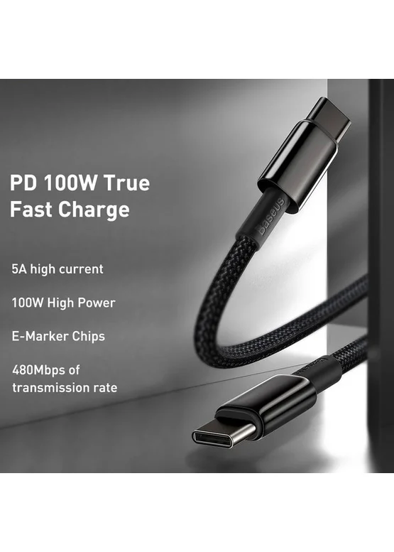 Дата кабель Baseus Tungsten Gold Type-C to Type-C Cable 100W (1m) (CATWJ-01) Черный
