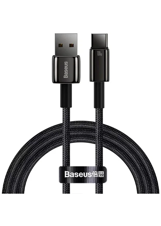 Дата кабель Baseus Tungsten Gold USB to Type-C Cable 100W (1m) (CAWJ00000) Black
