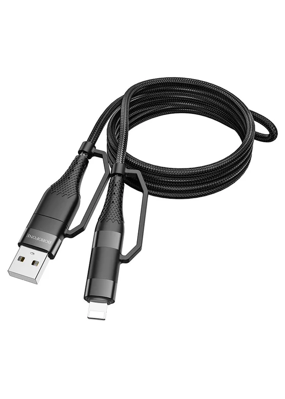 Дата кабель Borofone BU28 Multi-energy 4in1 Type-C/USB - Type-C/Lightning (1.2m) Черный