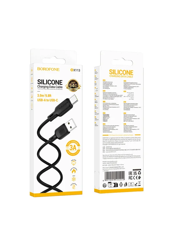 Дата кабель Borofone BX113 Lenny USB to Type-C 3A (3m) Black