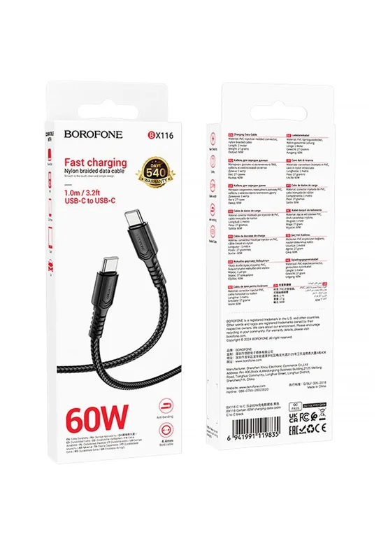 Дата кабель Borofone BX116 Certain Type-C to Type-C 60W (1m) Black