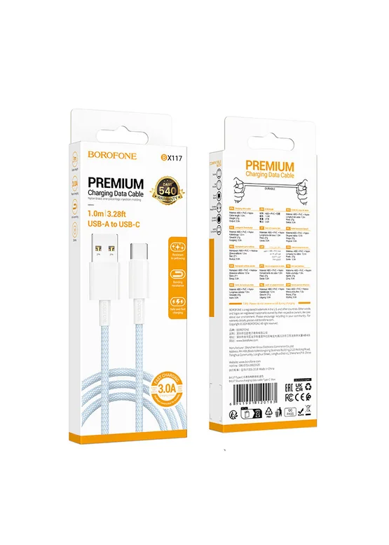 Дата кабель Borofone BX117 Source USB to Type-C 3A (1m)