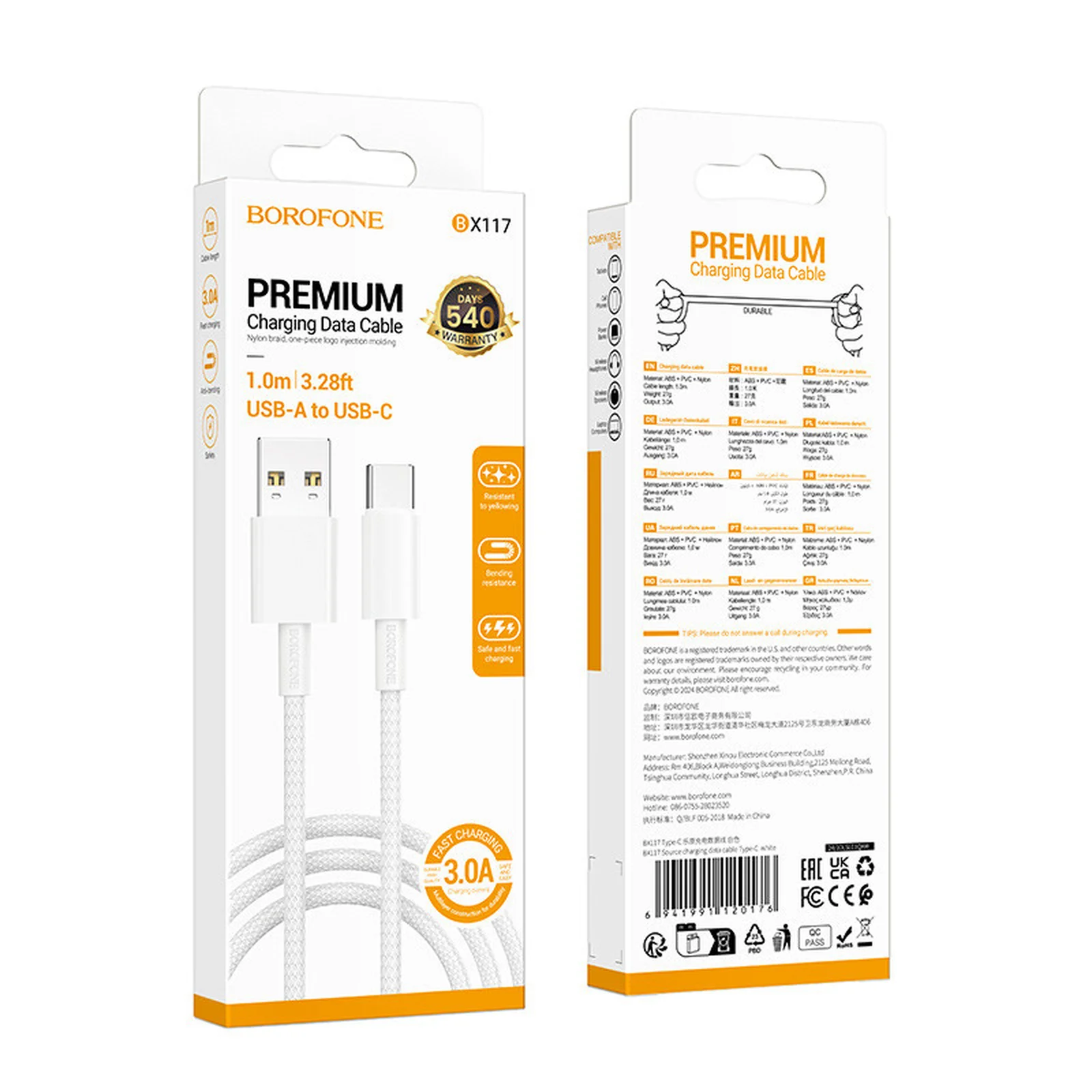 Дата кабель Borofone BX117 Source USB to Type-C 3A (1m) White