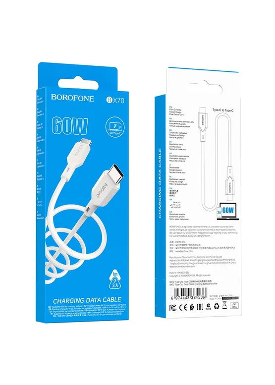 Представьте себе утро, когда технологии становятся продолжением ваших желаний и потребностей. Дата кабель Borofone BX70 Type-C to Type-C — это ваш надежный союзник в мире цифровых возможностей. Белоснежный и элегантный, он словно мост между устройствами, дарит свободу и комфорт.
