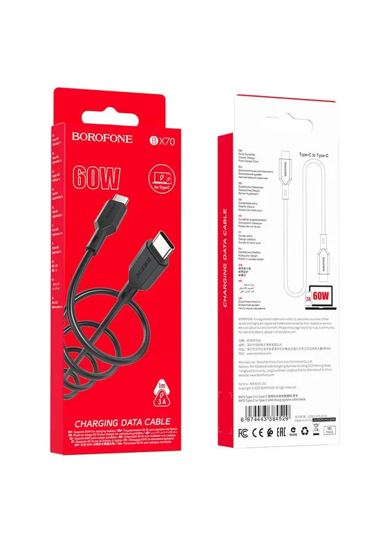 В мире, где каждая секунда на счету, и технологии играют ключевую роль, дата-кабель Borofone BX70 Type-C to Type-C 60W становится вашим надежным спутником в этом быстром потоке жизни. Погрузитесь в атмосферу, где каждое подключение превращается в уникальное путешествие, наполненное скоростью и мощностью. 💥