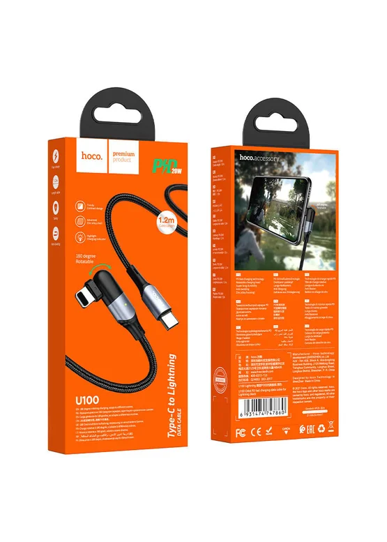 Дата кабель Hoco U100 "Orbit PD" Type-C to Lightning (1.2 m) Черный