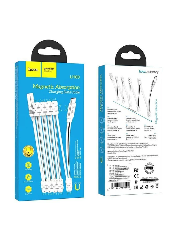 Дата кабель Hoco U103 Magnetic Absorption USB to Type-C (1m) White