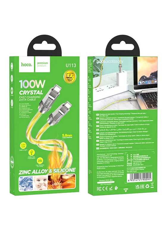 Дата кабель Hoco U113 Solid 100W Type-C to Type-C (1m) Gold
