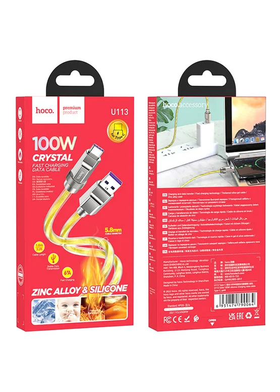 Дата кабель Hoco U113 Solid 100W USB to Type-C (1m) Gold