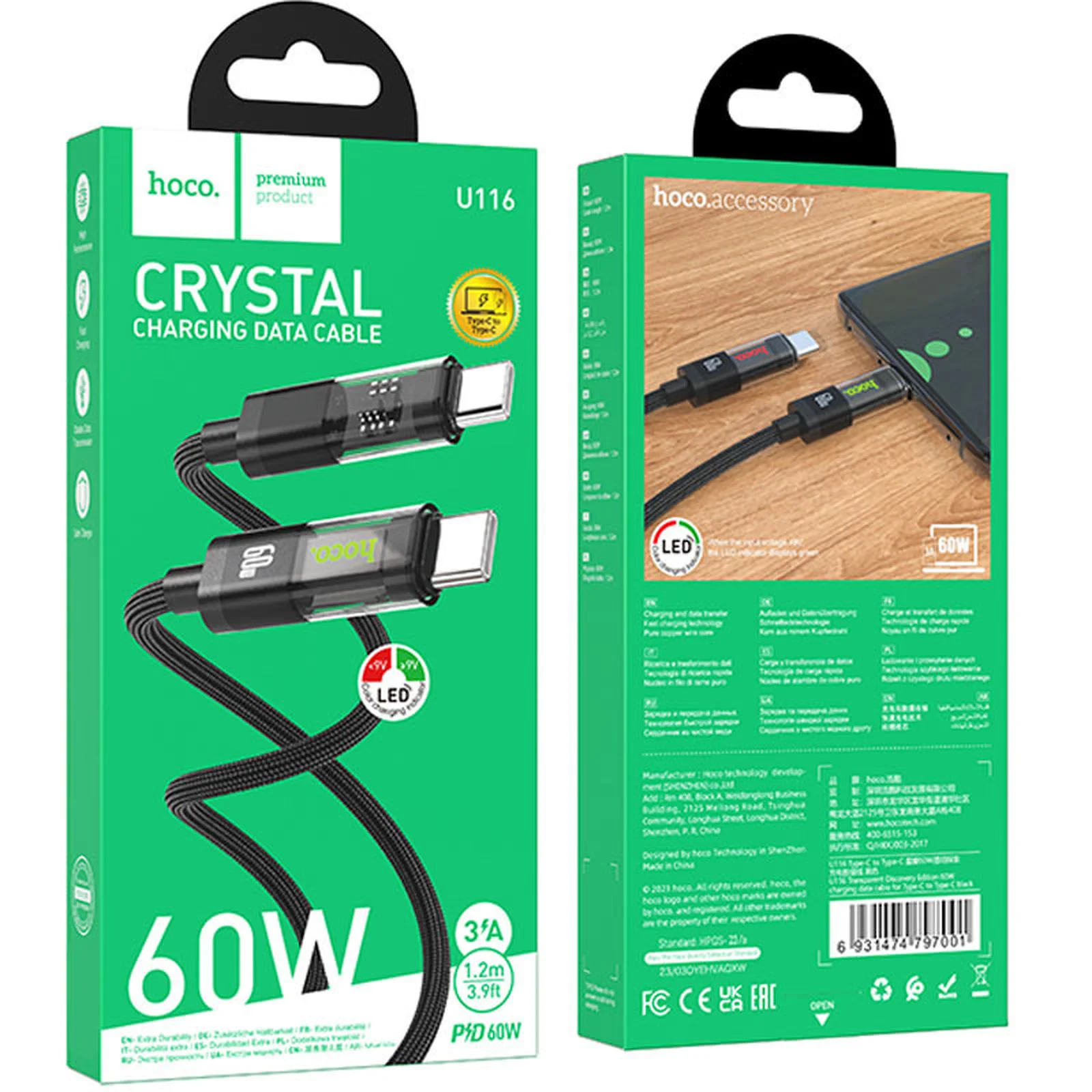 Дата кабель Hoco U116 Transparent Discovery Edition 60W Type-C to Type-C (1.2m) Black