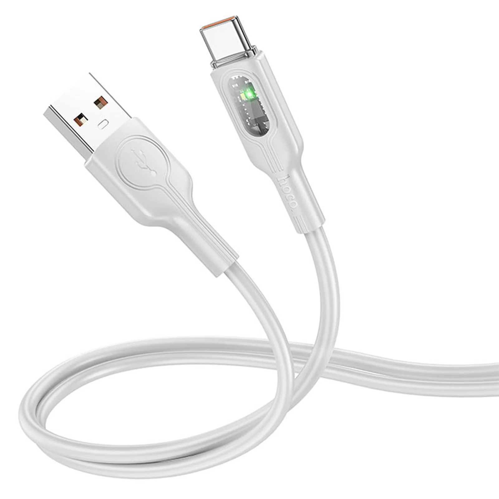 Дата кабель Hoco U120 Transparent explore intelligent power-off USB to Type-C 5A (1.2m) Gray