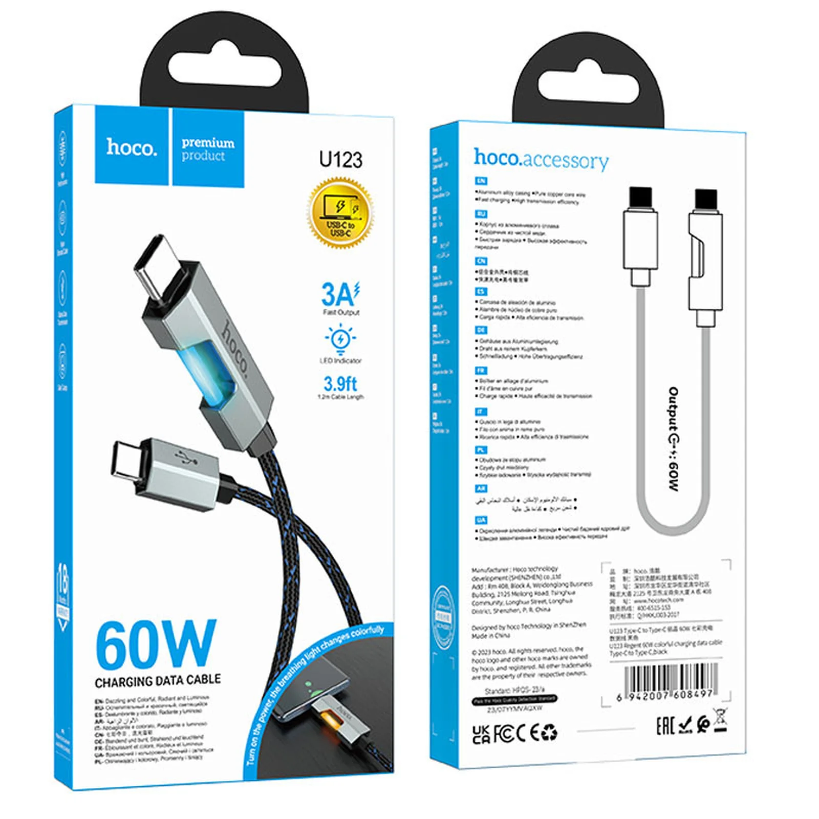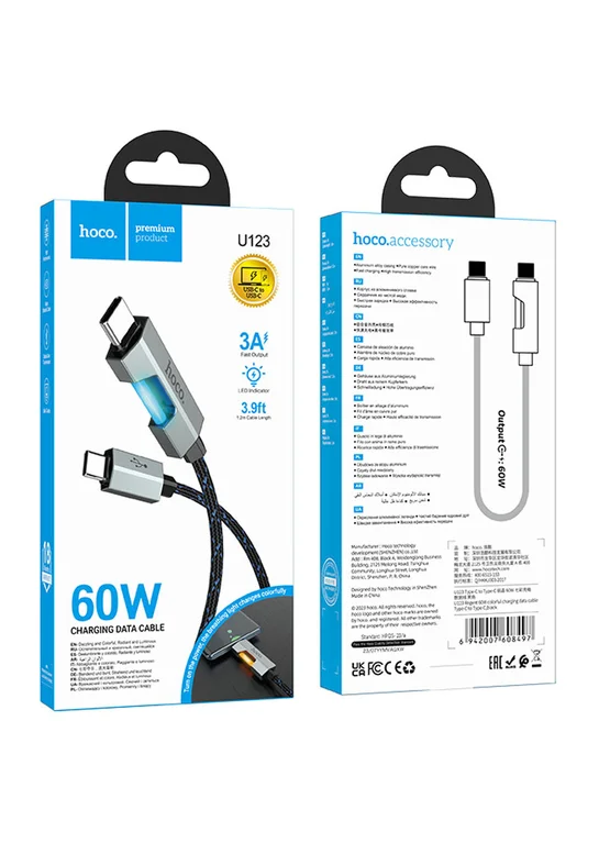 Дата кабель Hoco U123 Regent colorful 60W Type-C to Type-C (1.2m) Black