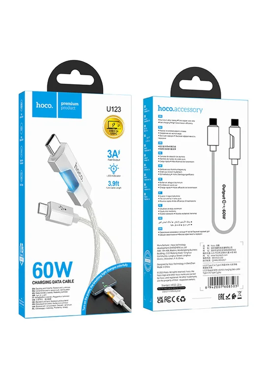 Дата кабель Hoco U123 Regent colorful 60W Type-C to Type-C (1.2m) Gray