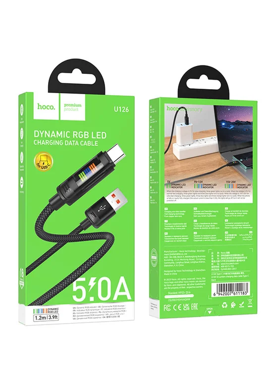 Дата кабель Hoco U126 Lantern 5A USB to Type-C (1.2m) Black