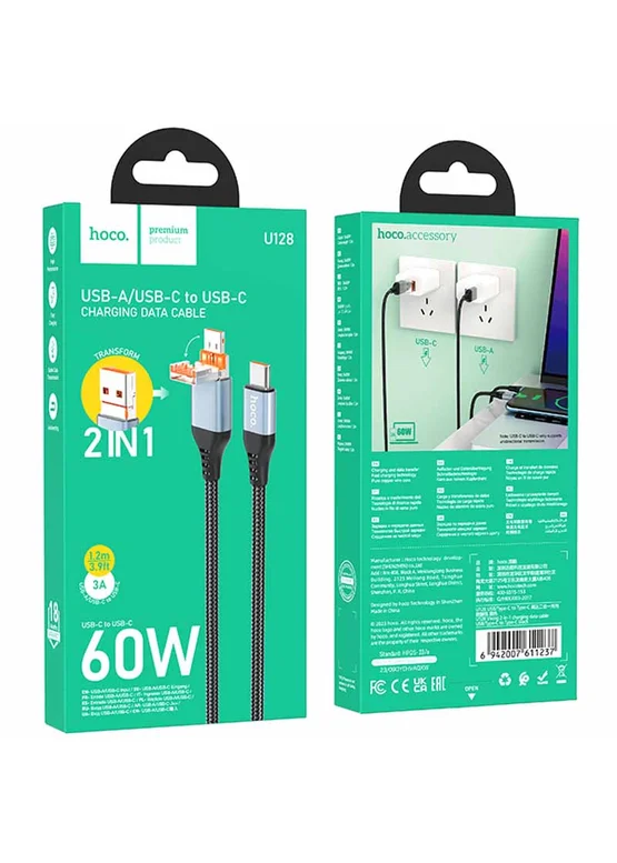 Дата кабель Hoco U128 Viking 2in1 USB/Type-C to Type-C (1m) Black
