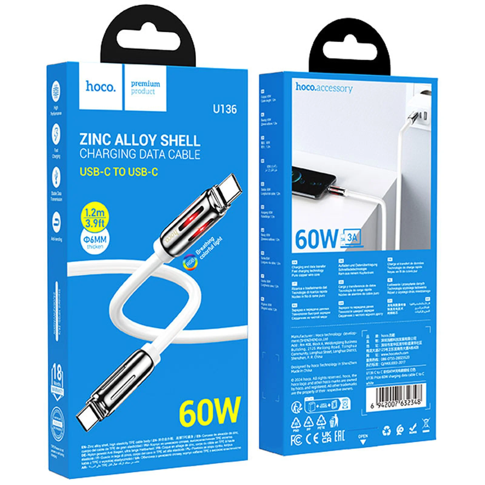 Дата кабель Hoco U136 Prize Type-C to Type-C 60W (1.2m) White