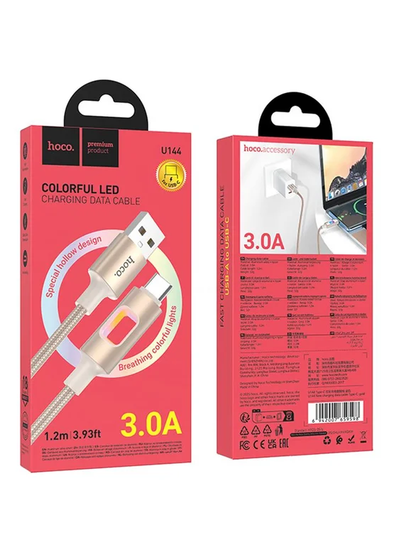 Дата кабель Hoco U144 New USB to Type-C 3A (1.2m) Gold
