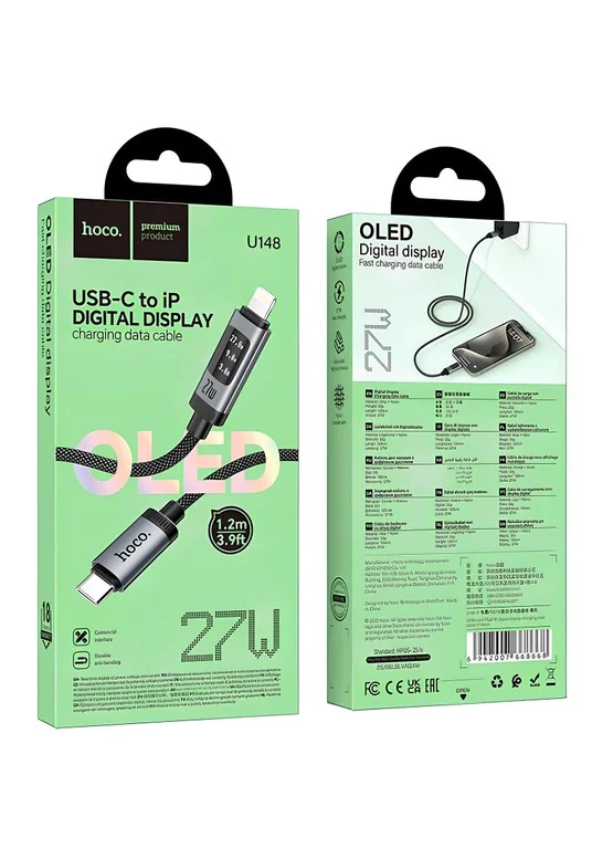 Дата кабель Hoco U148 Lord with display Type-C to Lightning 27W (1.2m) Black