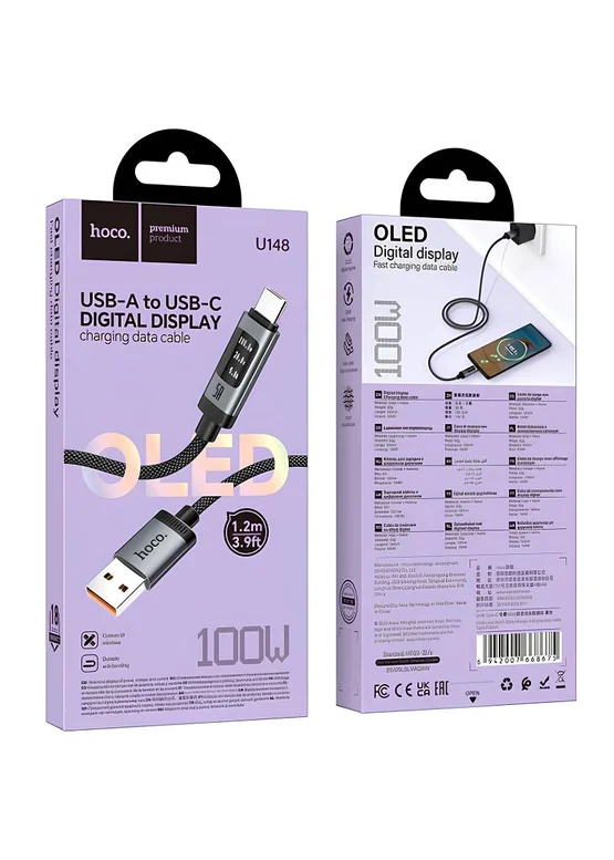 Дата кабель Hoco U148 Lord with display USB to Type-C 100W (1.2m) Black