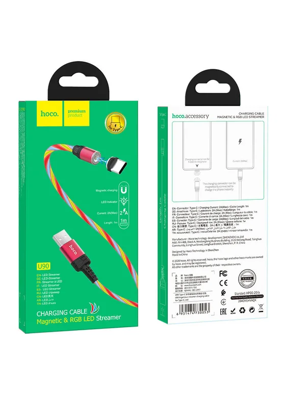 Дата кабель Hoco U90 "Ingenious streamer" Type-C (1m) Красный