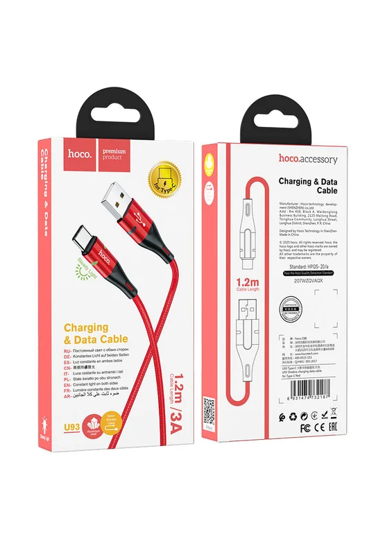 Дата кабель Hoco U93 "Shadow" Type-C (1.2 m) (Красный)
