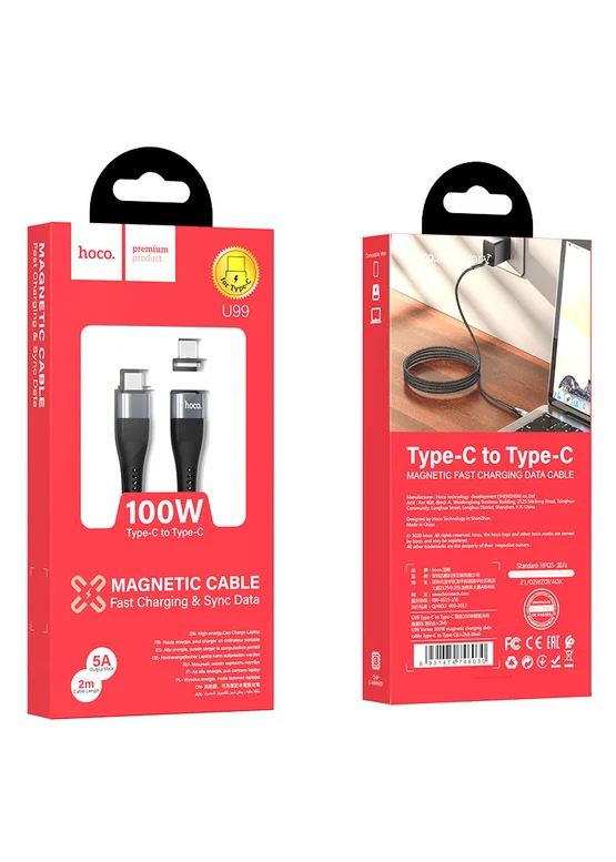 Дата кабель Hoco U99 Magnetic Type-C to Type-C 100W (1m) Черный