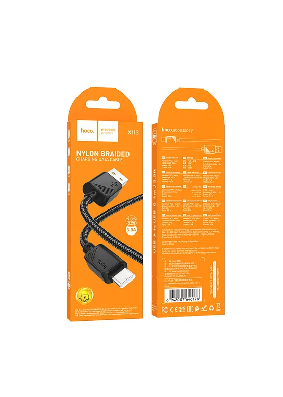 Кабель с нейлоновой оплеткой предназначен для передачи данных и зарядки устройств с разъемом Type-C.