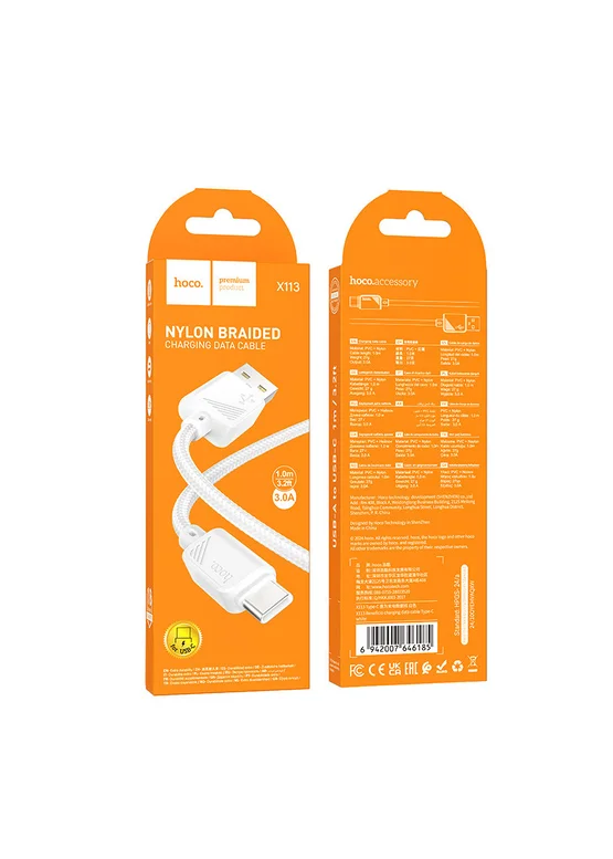 Кабель с нейлоновой оплеткой предназначен для передачи данных и зарядки устройств с разъемом Type-C.