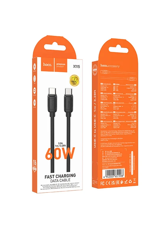Дата кабель Hoco X115 Surpass Type-C to Type-C 60W (1m) Black