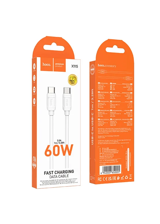 Дата кабель Hoco X115 Surpass Type-C to Type-C 60W (1m) White