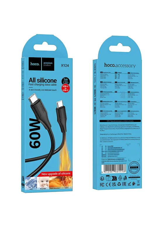 Дата кабель Hoco X124 Bien silicone Type-C to Type-C 60W (1m) Black