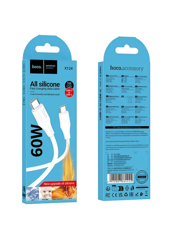 Дата кабель Hoco X124 Bien silicone Type-C to Type-C 60W (1m) White