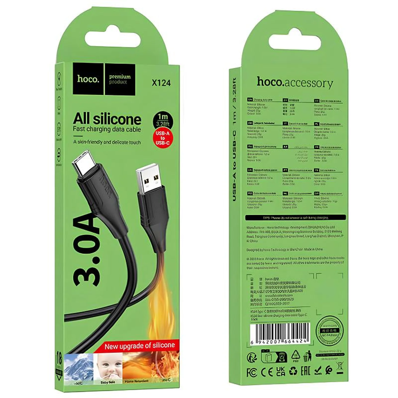 Дата кабель Hoco X124 Bien silicone USB to Type-C 3A (1m) Black