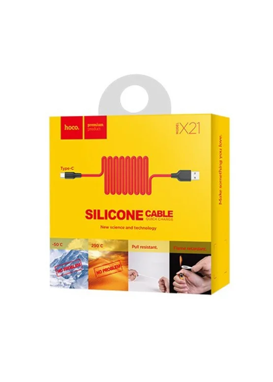 Дата кабель Hoco X21 Silicone Type-C Cable (1m) Черный / Красный