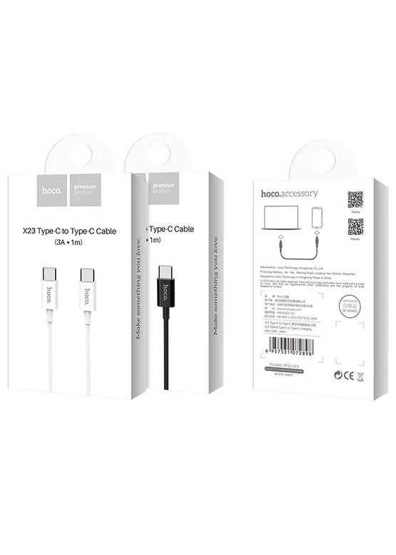Дата кабель Hoco X23 Skilled Type-C to Type-C (3A/1М) (Белый)