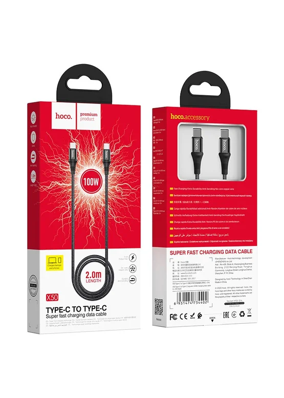 Дата кабель Hoco X50 "Excellent" Type-C to Type-C (2m) Черный